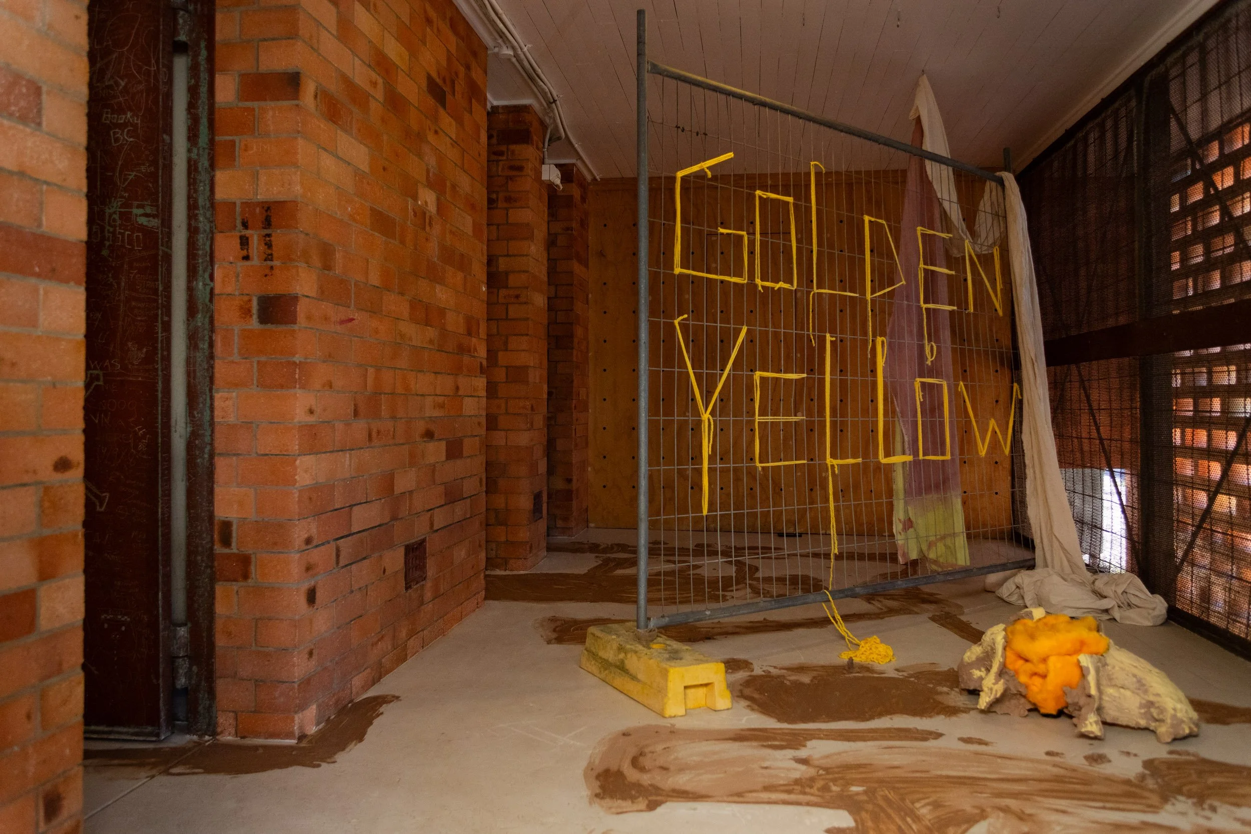 Amongst the solitary walls of The Old Lock Up in Maroochydore, the words ‘Golden Yellow’ loom in the entrance, loosely stitched in yarn. Such a luminescent phrase seems out of place within three inoperative holding cells. For the artist Odessa Mahony-de Vries, who is of Dutch and Indonesian heritage, this encroaching sense of ambiguity is not unfamiliar. Where ‘yellow’ evokes imagery of sunlight for some, those belonging to the Asian-Australian diaspora may recall penetrative gazes and strangers questioning, “where are you from?” With curiosity and light, Odessa is working out what it means to have ‘mixed’ heritage, and how this liminality may fit within her practice.